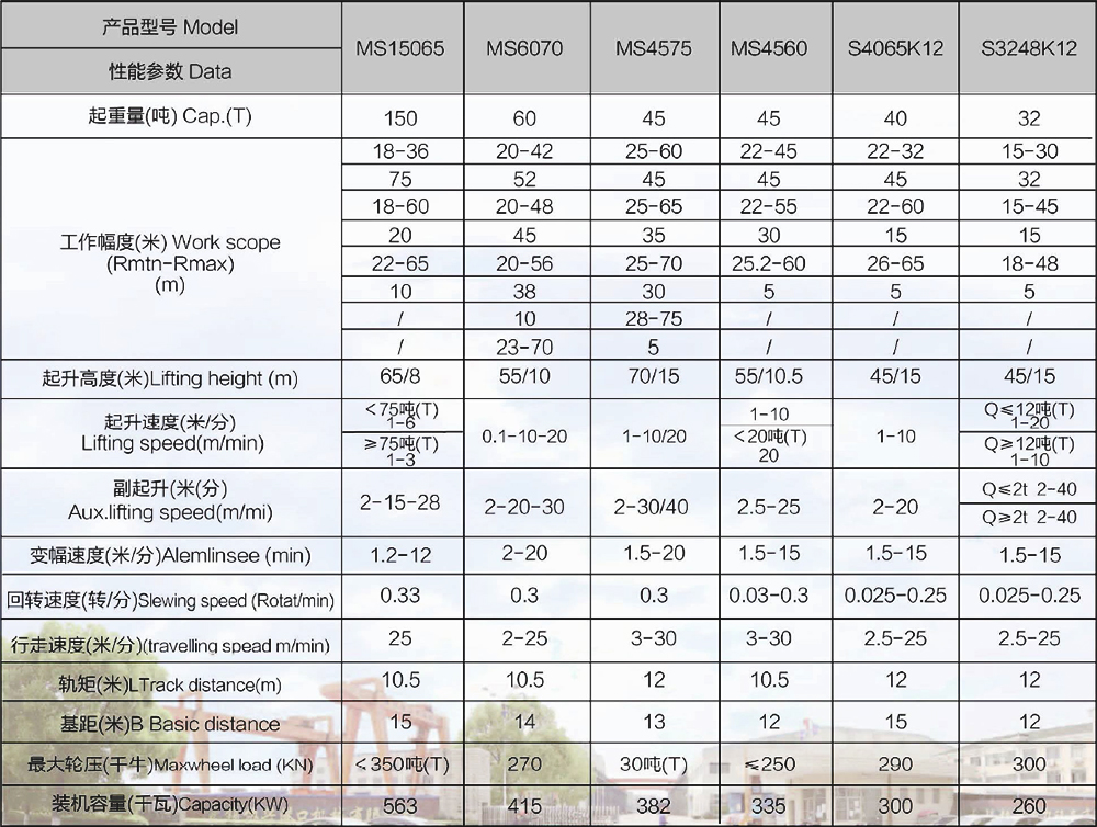 船厂用门座起重机,适用于船厂,船台和舾装码头的物件的吊装作业结构形式采用圆筒体门架,四连杆臂架齿条变幅式,直臂架钢丝绳变幅,具 有工作幅度大,工作平稳等特点。